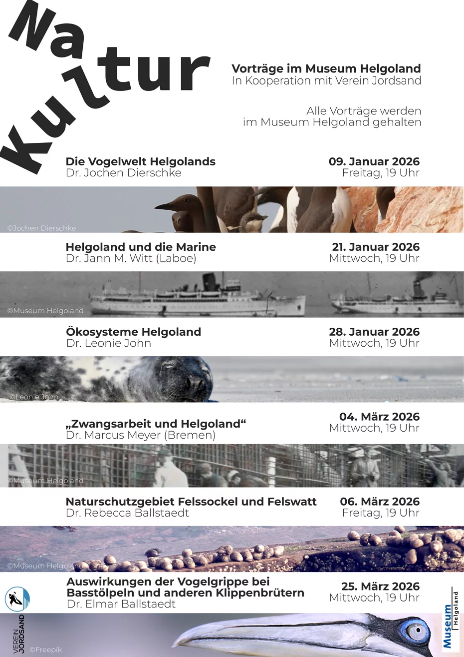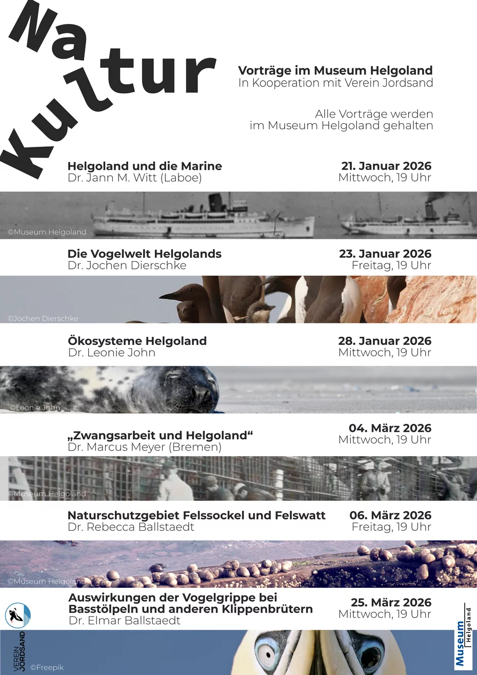 Zusammen mit dem Verein Jordsand veranstaltet das Museum Helgoland eine Vortragsreihe, die sich der einzigartigen Natur und der bewegten Geschichte der Insel widmet.