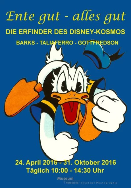 Al Taliaferro und Floyd Gottfredson. Sie haben die bekanntesten Disney-Comics über Jahrzehnte gezeichnet und fast alle Nebenfiguren um Micky und Donald erfunden. Die Sonderausstellung zeigt über 60 Arbeiten von 1933 bis 1995 aus der Sammlung von Ina Brockmann und Peter Reichelt: wertvolle Originale, Bleistift- und Tuschezeichnungen, Tagesstrips und Sonntagsseiten, Aquarelle und Lithographien. Die Entwicklung des Entenkosmos wird sichtbar und historische Disneydokumente geben einen Einblick in die Produktionsbedingungen dieser Zeit.